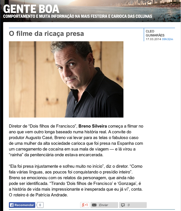 17 mar/14 "A Brasileira" na coluna Gente Boa - O Globo Postado por Casé Filmes em Cinema Tags: Cinema